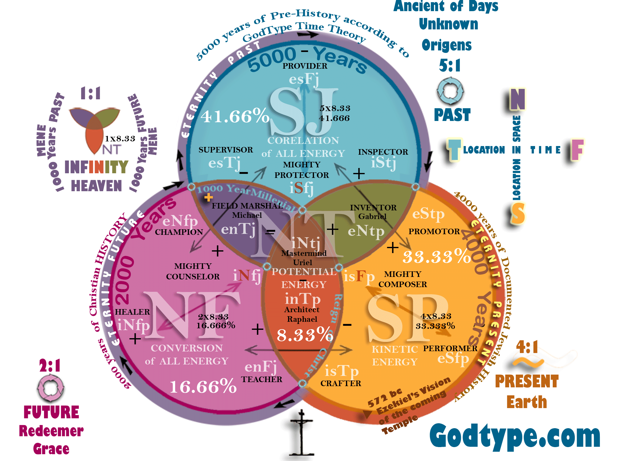 And yet every creative miracle spoken of in Genesis included all (3) of these “beings”. Working in unison these (3) Three Persons are One. Through the power of The Holy (Spirit) from above Unleashed at Pentecost by Christ, codifying the New Testament teacings of the four-fold Holy Trinity. The (entp)Inventor of the universe,the (intp)Architect & (intj)Mastermind of our earth – who (entj)Marshalled every available resource (physical & angelic) during the most incredible project of all eternity which we are taught in the Creation story of Genesis.