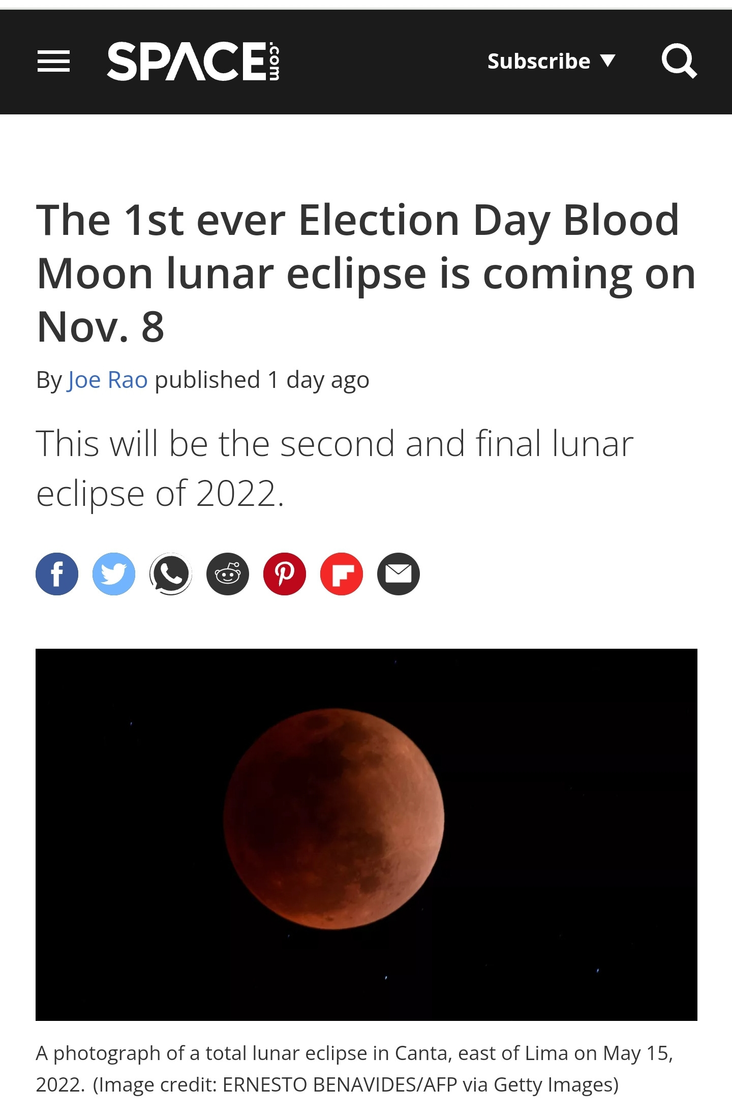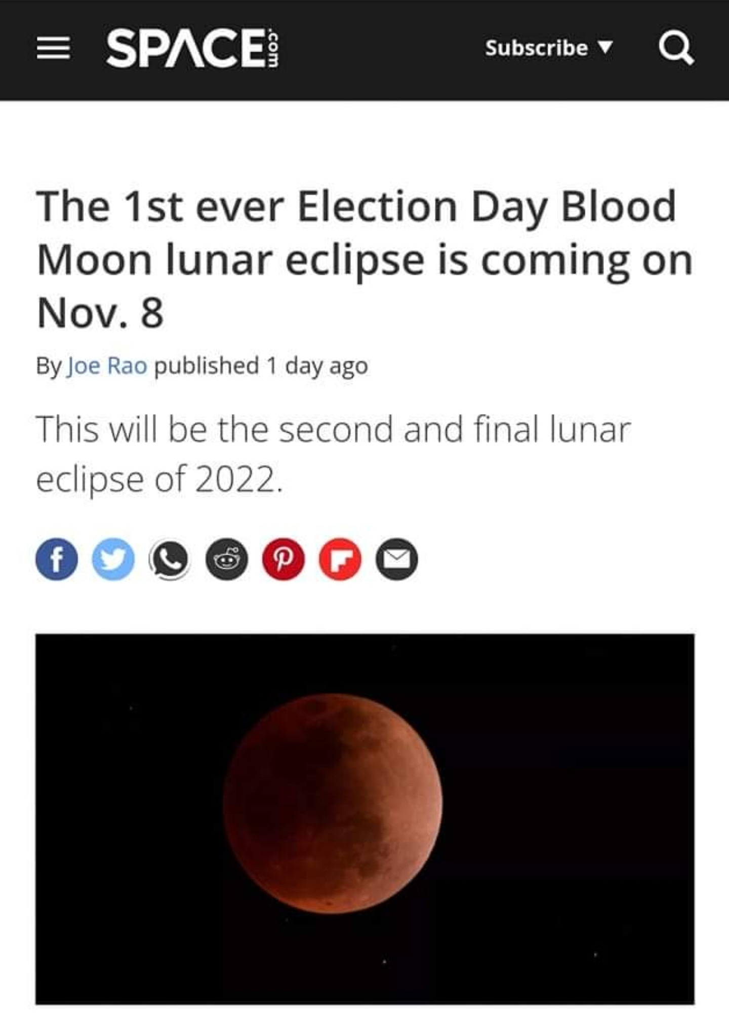 A Harbinger of Evolution - And its progeny: Unfettered Abortion in America. UPDATE! First Blood Moon in U.S. History Falls on Election Day - Nov. 8th 2022